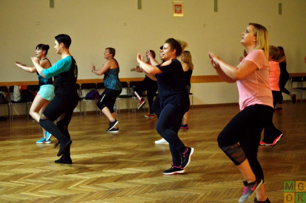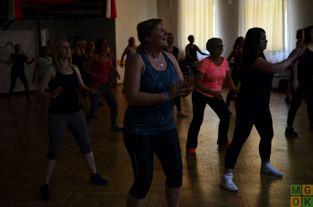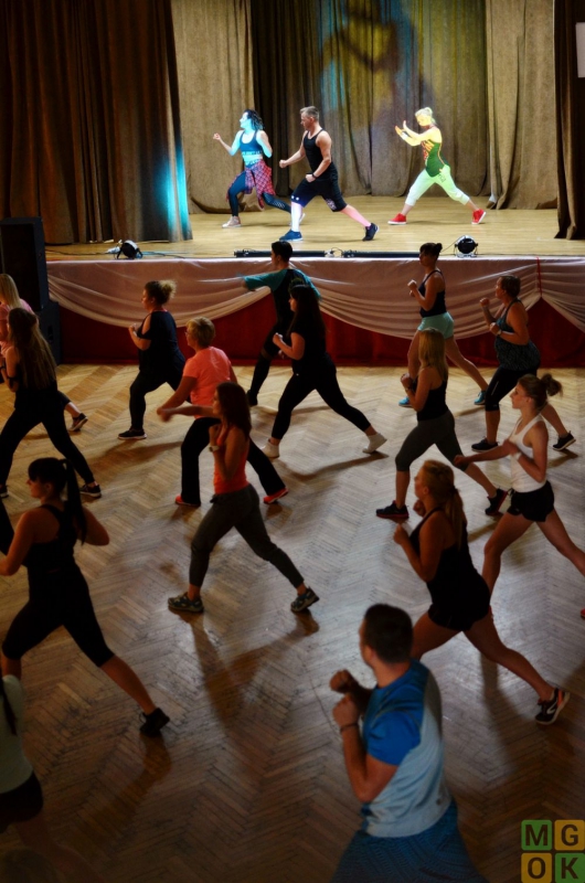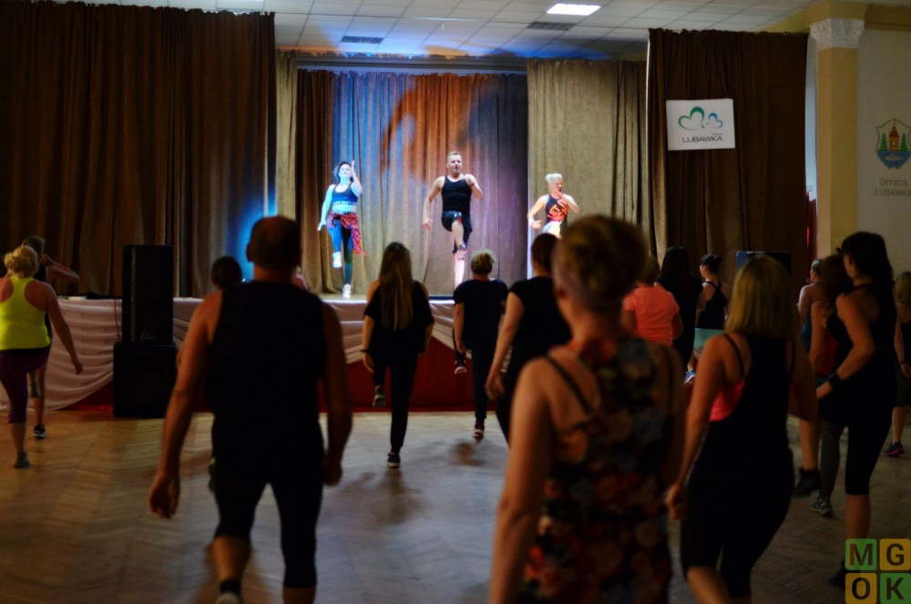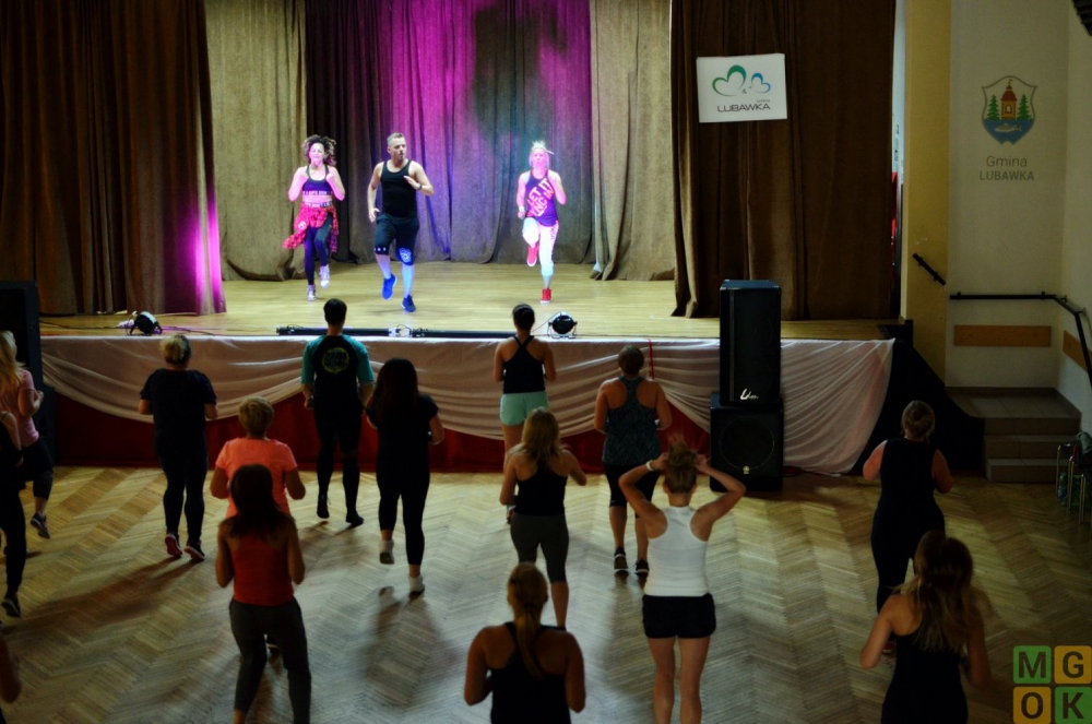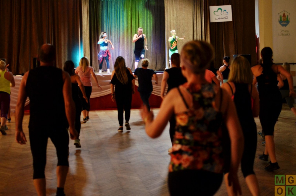Maraton zumby, czyli najbardziej pozytywne zajęcia fitness w 3-godzinnym bloku pn. "Zumba Party" odbyły się dzisiaj (2 czerwca) na sali Domu Kultury w Lubawce. Na scenie pojawiła się trójka instuktorów, w tym główny organizator wydarzenia p. Damian Strączek, którzy rozgrzewali i zachęcali do tańca licznie zgromadzonych uczestników zajęć.