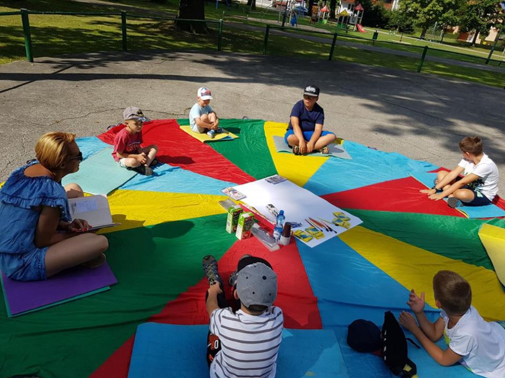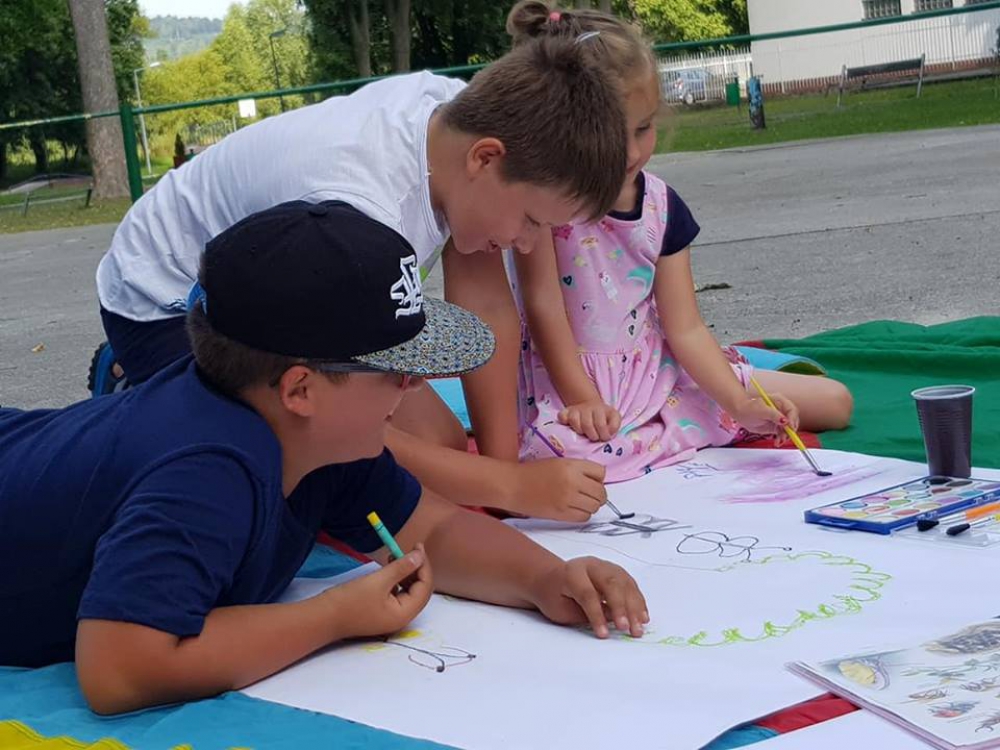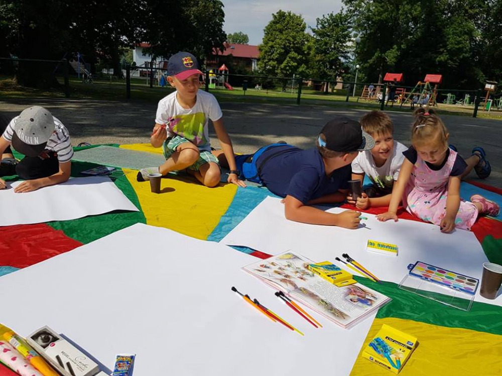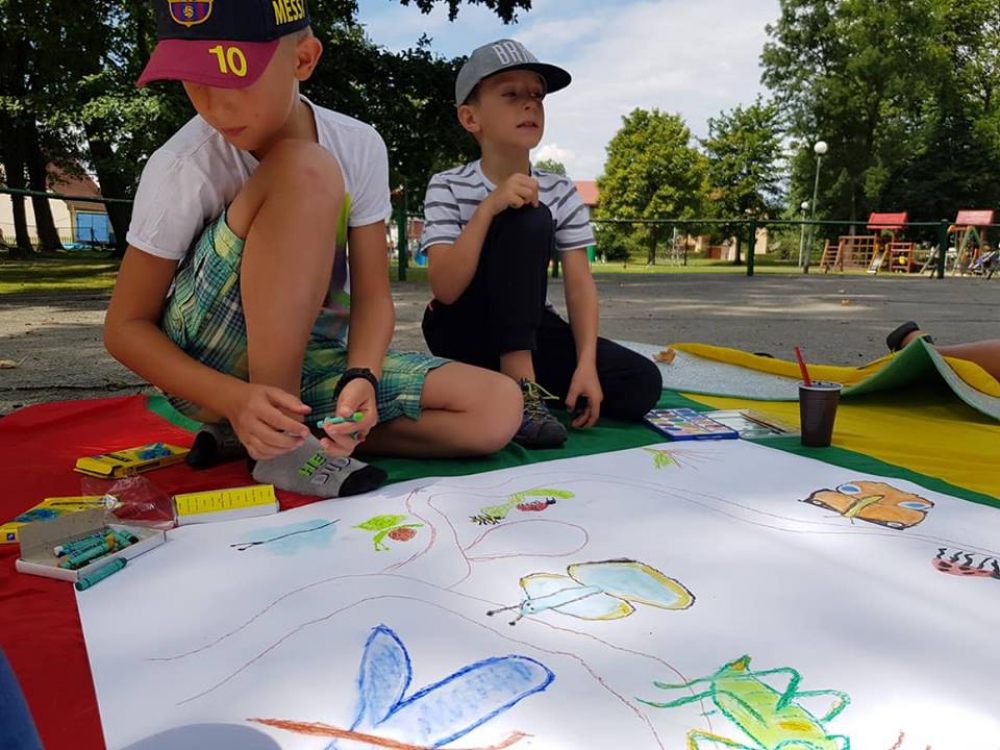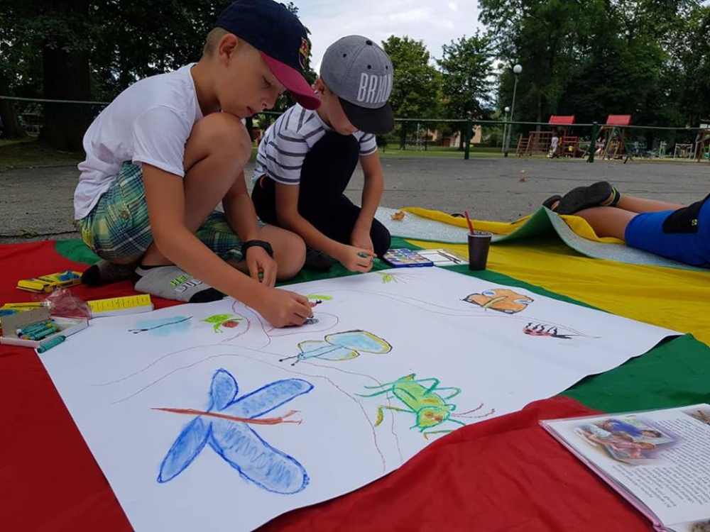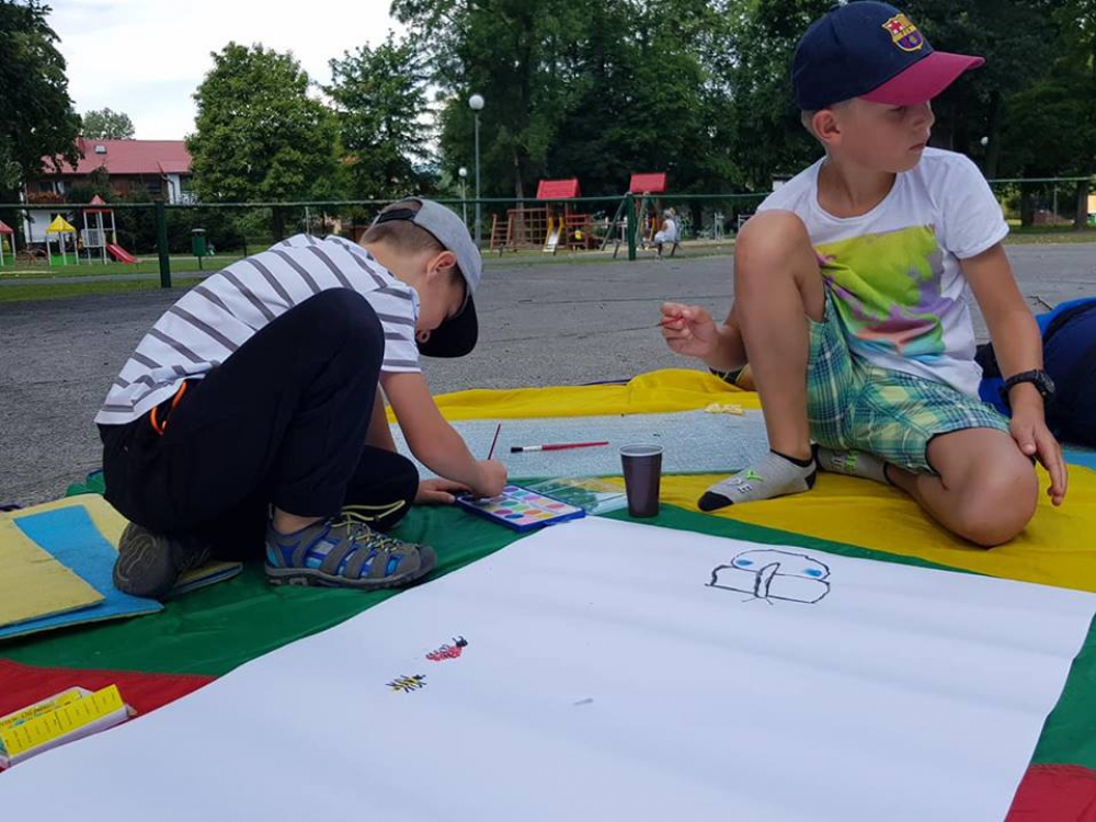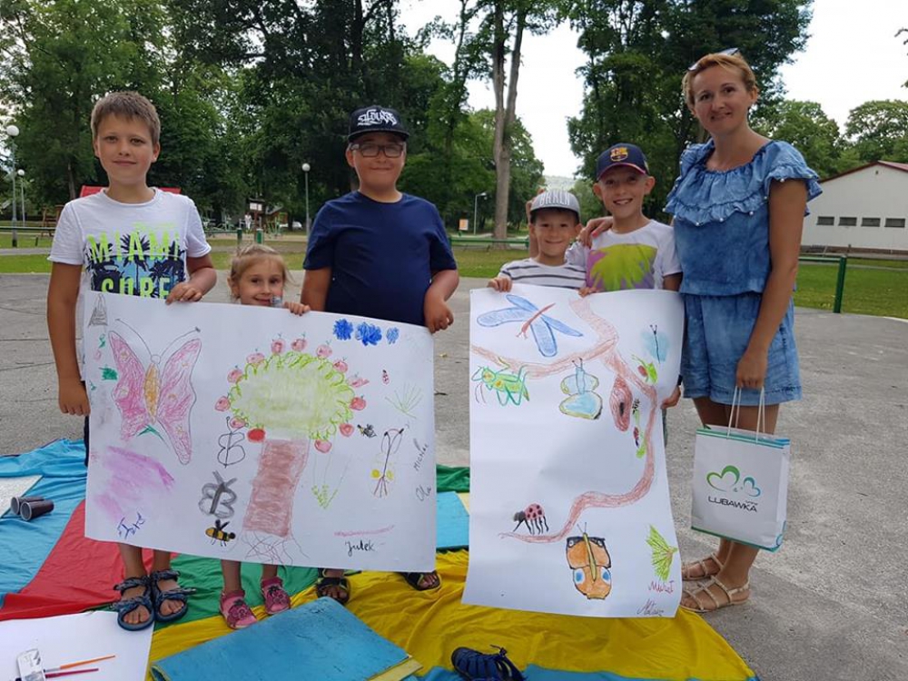 W poniedziałkowe przedpołudnie (23 lipca br.) w Parku Watra w Lubawce odbyło się kolejne "Bajkowanie na polanie", czyli wakacyjne spotkania z książką. Podczas wspólnego czytania dzieci miały okazję owady i ich ważną rolę odgrywaną w środowisku przyrodniczym. Po bajce dzieci na przygotowanych brystolach w raz z instruktorami malowali świat owadów zapamiętany z bajki.