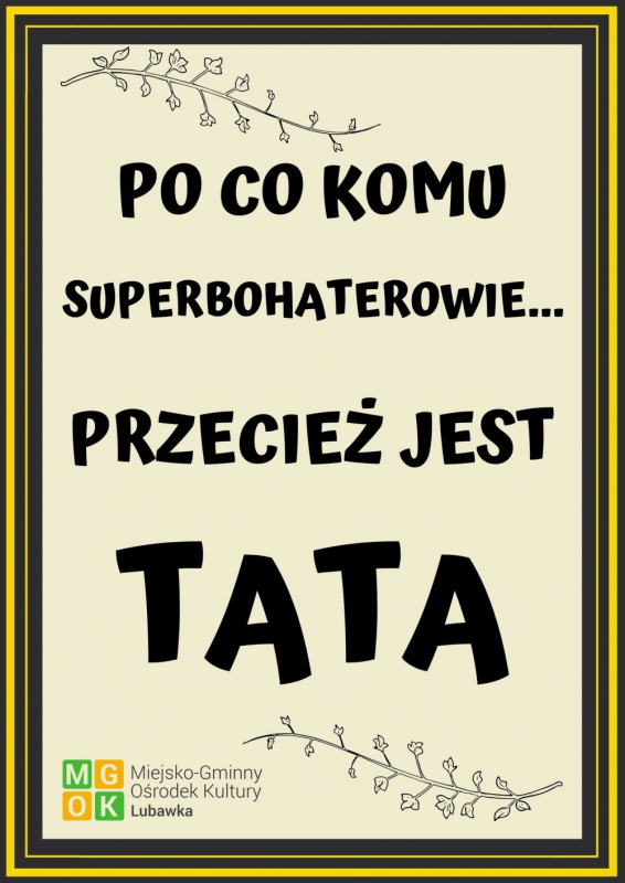 Dzień Ojca Bycie ojcem to najlepsza część roboty. Bycie tatą, to dopiero wyzwanie! Wszystkim Tatom życzymy dużo radości i wytrwałości. Galeria zdjęć Angelika Powązka MGOK Data wydarzenia: 2020-06-23 Stworzony: 2020-06-23 08:26 Edytowany: 2020-06-23 13:32