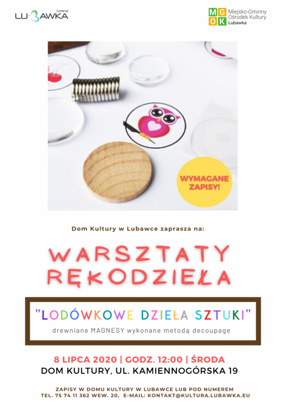 Kolejna wakacyjna propozycja dla młodszych już w najbliższa środę 8 lipca o godzinie 12:00 odbędą się warsztaty pn. "Lodówkowe dzieła sztuki" - czyli zrobimy przepiękne, drewniane magnesy metodą decoupage!