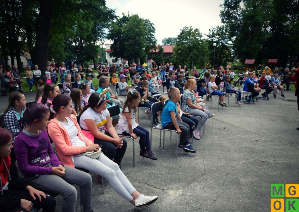 Magik pokazał wiele ciekawych sztuczek, a do wykonania niektórych z nich potrzebował pomocy małego asystenta. Dzieci z chęcią uczestniczyły w pokazie i z zainteresowaniem śledziły to, co prezentuje gość. Bardzo dziękujemy za tak liczne przybycie i mamy nadzieję, że na kolejnych wakacyjnych spotkaniach frekwencja dopisze tak licznie, jak dzisiaj!