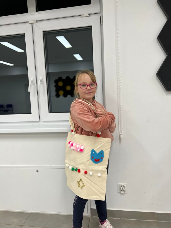 Podczas dzisiejszego spotkania każdy z uczestników zajęć udekorował własną ekologiczną torbę. Dzięki kreatywności dzieci powstały naprawdę piękne prace.