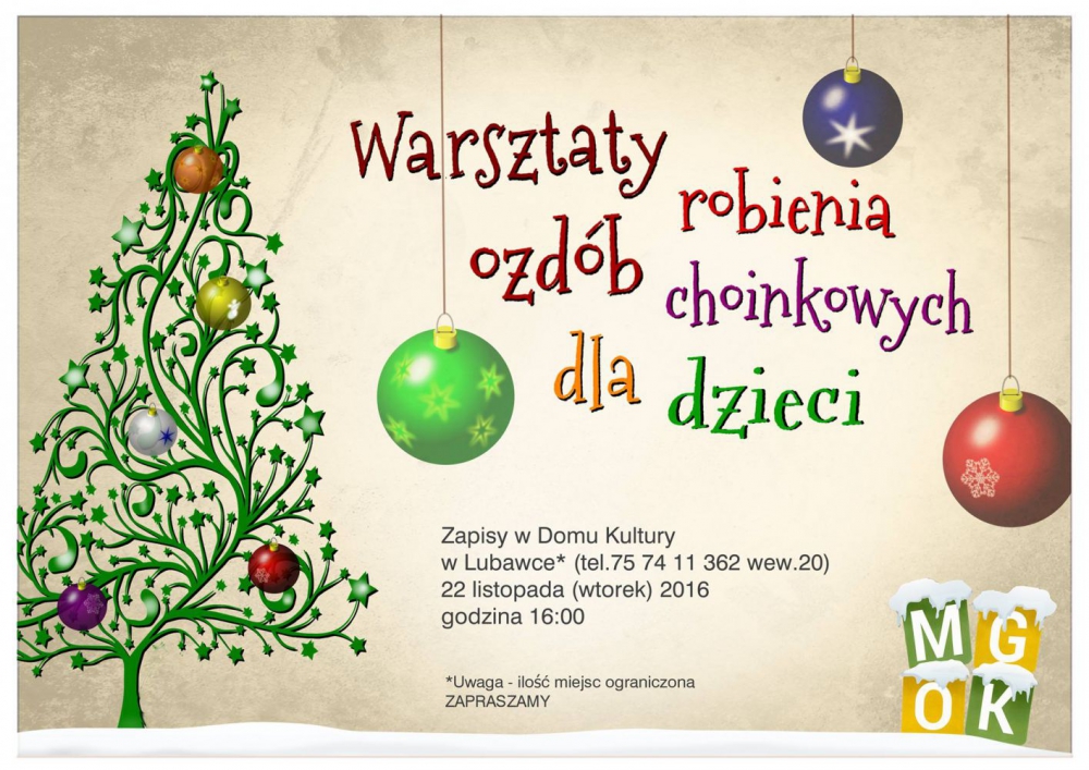 22 listopada br. (wtorek) odbędą się warsztaty z robienia ozdób świątecznych . Tym razem uczestnicy nauczą się wykonywania wspaniałych ozdób choinkowych! Zapraszamy rodziców z pociechami, dobra zabawa gwarantowana! :)