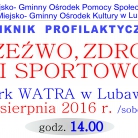 Dnia 06.08.2016 w Parku "Watra" w Lubawce odbędzie się piknik profilaktyczny pod hasłem "Trzeźwo, Zdrowo i Sportowo". Ideą Pikniku jest zachęcenie społeczności lokalnej do zdrowego stylu życia, aktywności ruchowej oraz popularyzowanie idei trzeźwościowych. Miesiąc sierpień jest dobrym czasem do przeprowadzenia tego rodzaju przedsięwzięć, ponieważ jest to miesiąc trzeźwości.