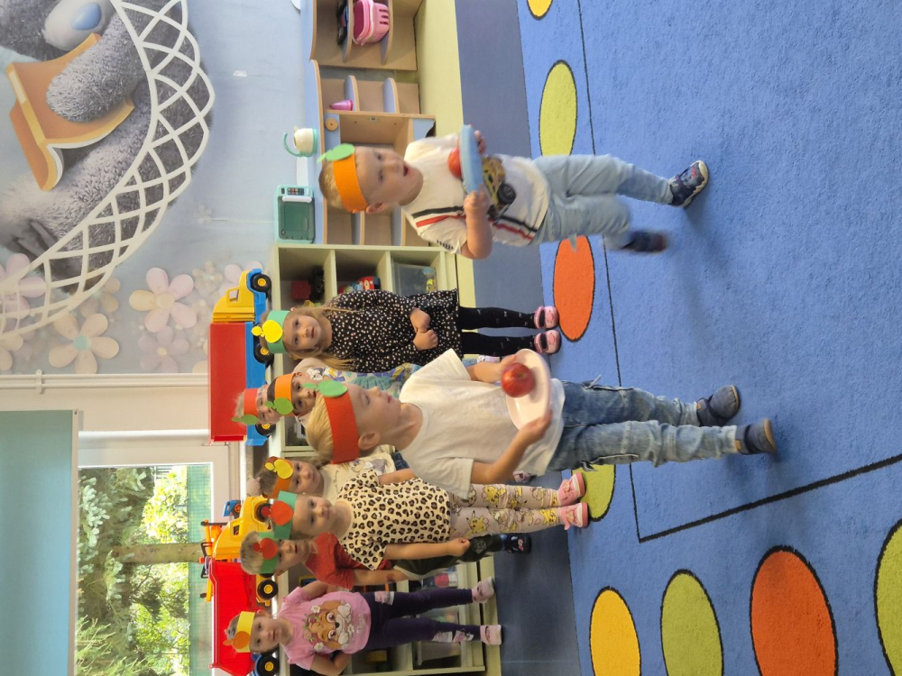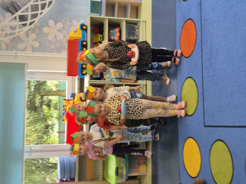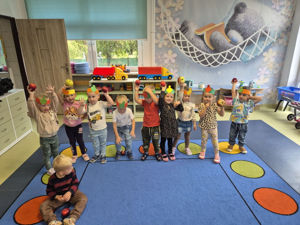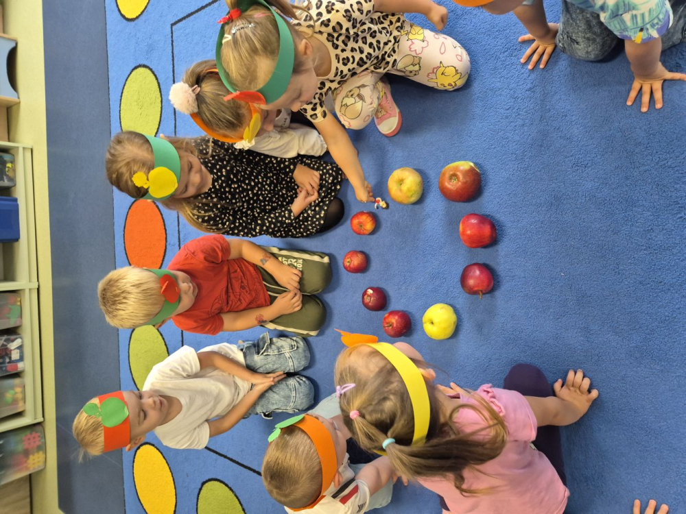 Nie zabrakło również wesołych zabaw i konkurencji związanych z jabłkiem. Maluchy chętnie brały w nich udział, ucząc się współpracy i ciesząc wspólnie spędzonym czasem.