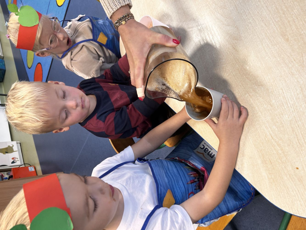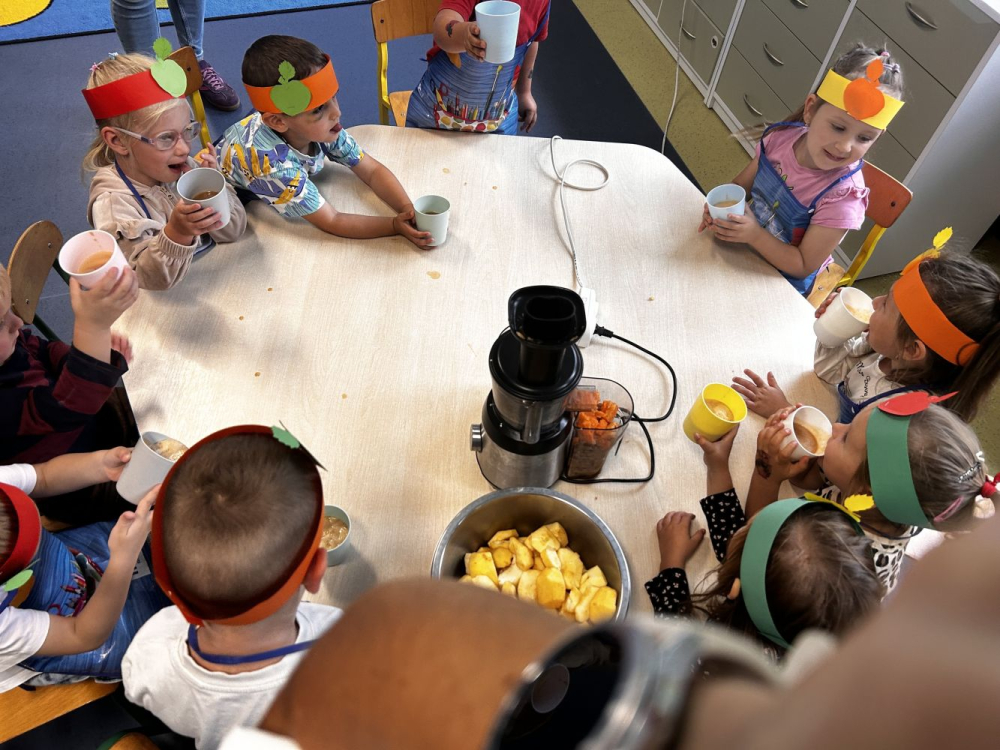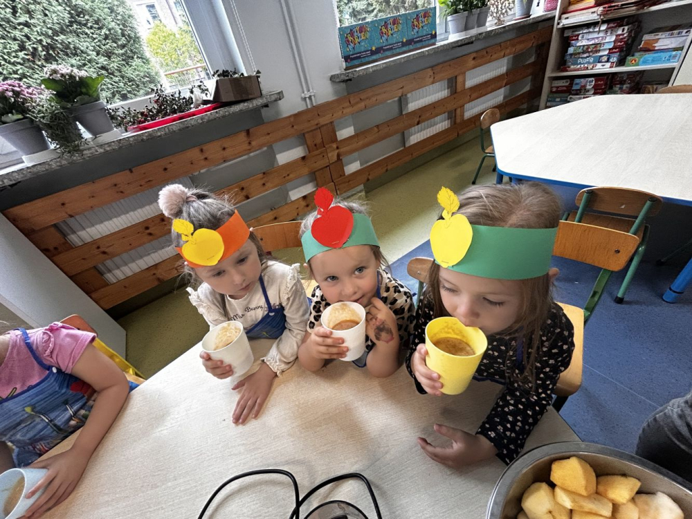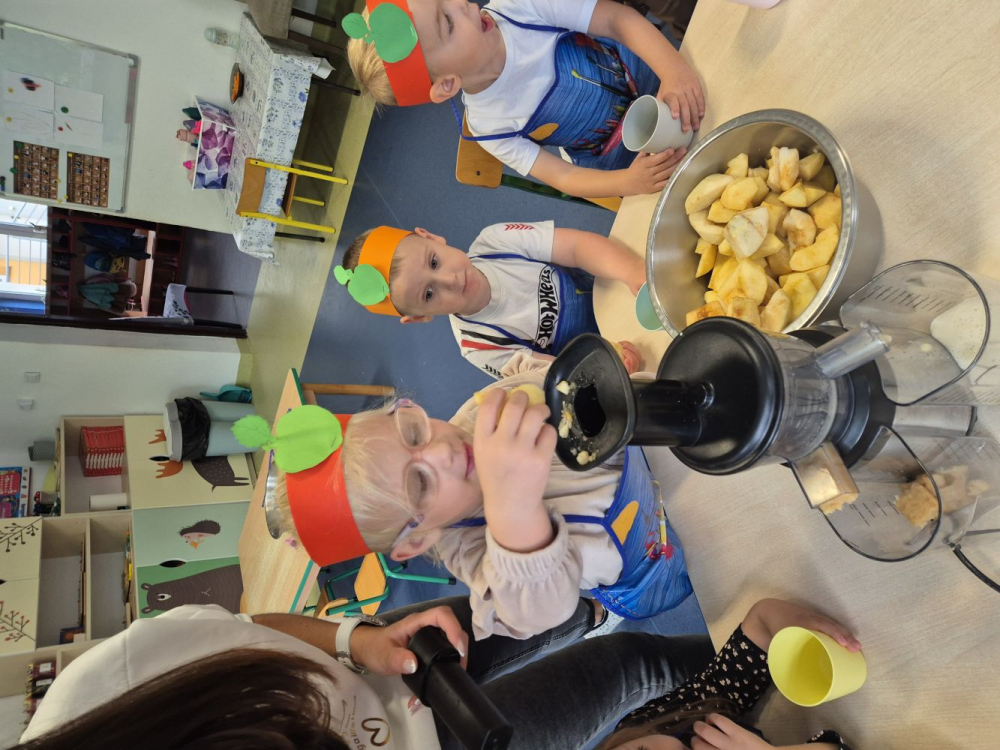 26 września w naszym przedszkolu najmłodsza grupa Skrzaty obchodziła Dzień Jabłka. Był to dzień pełen radości, smaków i wrażeń. Dzieci własnoręcznie przygotowały pyszny sok jabłkowy, który wszystkim bardzo smakował.