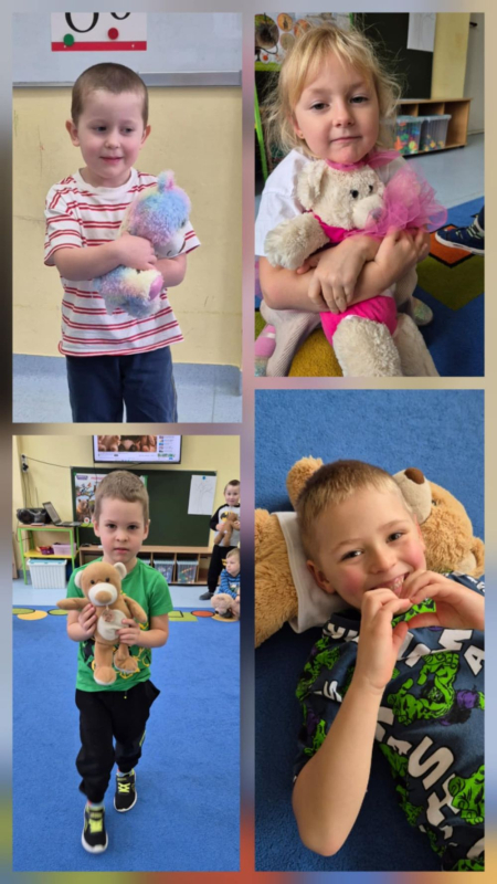 W grupach Elfów i Smerfów odbyły się radosne obchody Dnia Pluszowego Misia. Dzieci przyniosły do przedszkola swoje ulubione pluszaki, które towarzyszyły im podczas całego dnia zabaw. Przedszkolaki uczestniczyły w misiowych konkurencjach ruchowych, wspólnych tańcach oraz zajęciach plastycznych, podczas których powstały piękne prace.