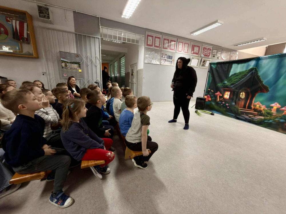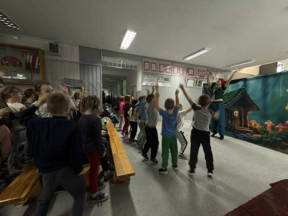 Dzisiaj dzieci zerówkowe wzięły udział w teatrzyku profilaktycznym ?Co w uszach gra?. Przedstawienie w formie zabawy edukowało w przystępny i atrakcyjny sposób higienę słuchu i zdrowia ogólnego. Poruszało ważne tematy, takie jak radzenie sobie z emocjami (złość, smutek), budowanie empatii, problemy z samooceną.